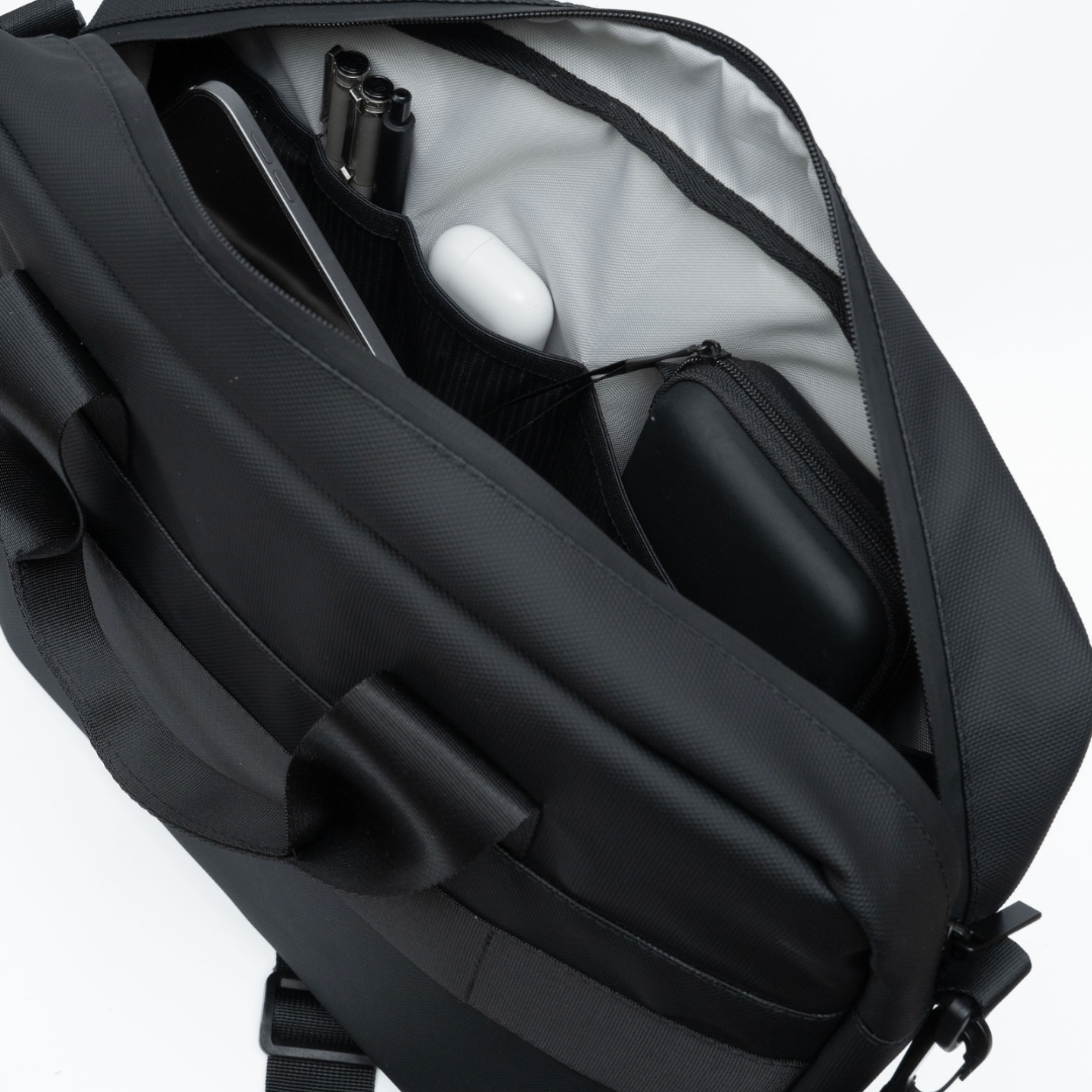 Compartimiento principal con bolsillo porta laptop y bolsillo porta tablet, ademas de bolsillos diversos